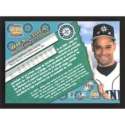 This is a 1998 Pacific Joey Cora baseball card. The card is #183 and pictures show condition.