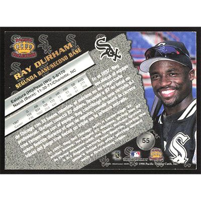 This is a 1998 Pacific Ray Durham baseball card. The card is #55 and pictures show condition.