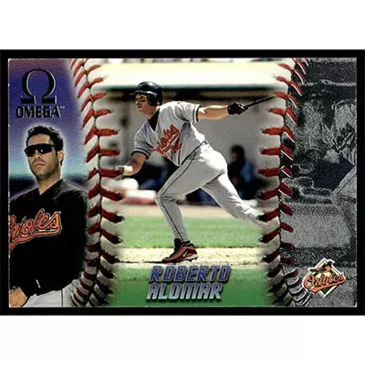 This is a 1998 Pacific Omega Roberto Alomar baseball card. The card is #27 and pictures show condition.