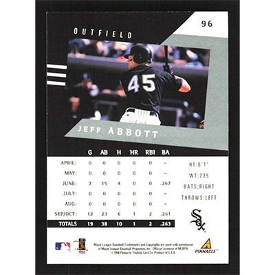 This is a 1998 Pinnacle Performers Jeff Abbott baseball card. The card is #96 and pictures show condition.