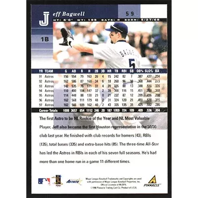 This is a 1998 Pinnacle Plus Jeff Bagwell baseball card. The card is #59 and pictures show condition.