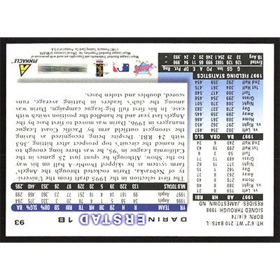 This is a 1998 Score Darin Erstad baseball card. The card is #93 and pictures show condition.