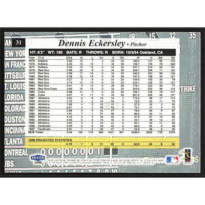 This is a 1998 Sports Illustrated Dennis Eckersley baseball card. The card is #31 and pictures show condition.
