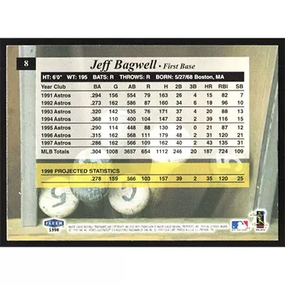 This is a 1998 Sports Illustrated Jeff Bagwell baseball card. The card is #8 and pictures show condition.