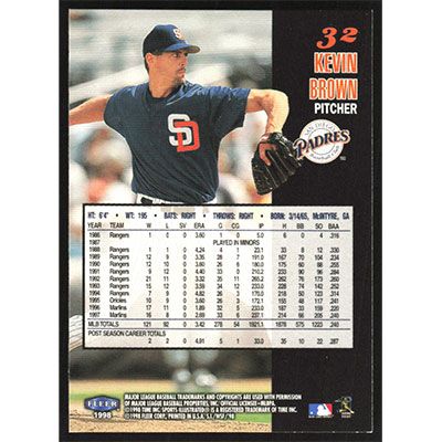 This is a 1998 Sports Illustrated World Series Fever Kevin Brown baseball card. The card is #32 and pictures show condition.