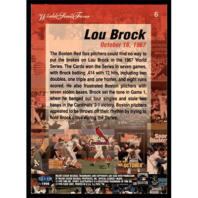 This is a 1998 Sports Illustrated World Series Fever Lou Brock baseball card. The card is #6 and pictures show condition.