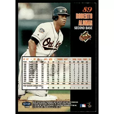 This is a 1998 Sports Illustrated World Series Fever Roberto Alomar baseball card. The card is #89 and pictures show condition. Team(s): Baltimore Orioles