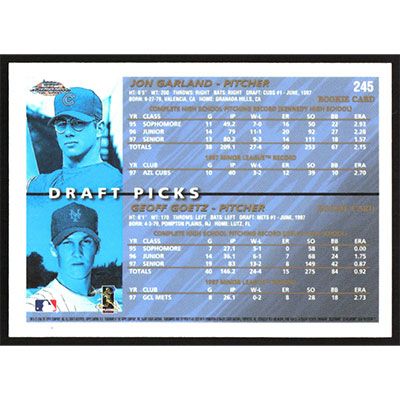 This is a 1998 Topps Chrome Jon Garland and Geoff Goetz Draft Picks baseball card. The card is #245 and pictures show condition. Team(s): Chicago Cubs/New York Mets