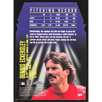 This is a 1998 Topps Chrome Hall Bound Dennis Eckersley baseball card. The card is #HB5 and pictures show condition.