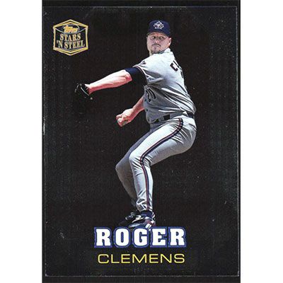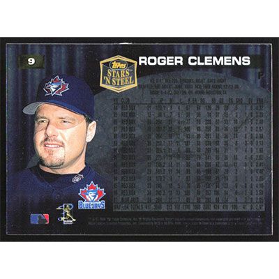 This is a 1998 Topps Stars 'N Steel Roger Clemens baseball card. The card is #9 and pictures show condition.