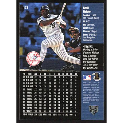 This is a 1998 Upper Deck Cecil Fielder baseball card. The card is #173 and pictures show condition.