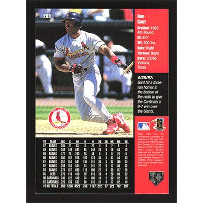 This is a 1998 Upper Deck Ron Gant baseball card. The card is #203 and pictures show condition.