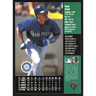 This is a 1998 Upper Deck Russ Davis baseball card. The card is #227 and pictures show condition.