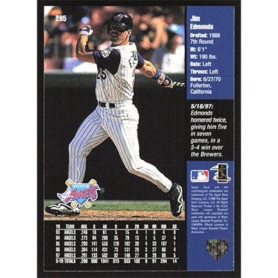 This is a 1998 Upper Deck Jim Edmonds baseball card. The card is #295 and pictures show condition.