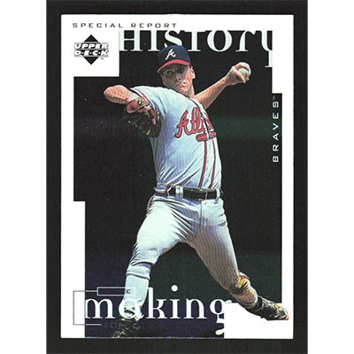 This is a 1998 Upper Deck Tom Glavine History in the Making baseball card. The card is #362 and pictures show condition.