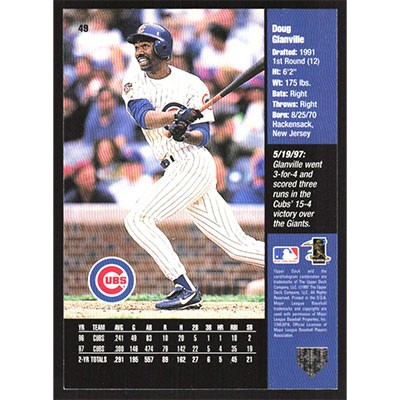 This is a 1998 Upper Deck Doug Glanville baseball card. The card is #49 and pictures show condition.