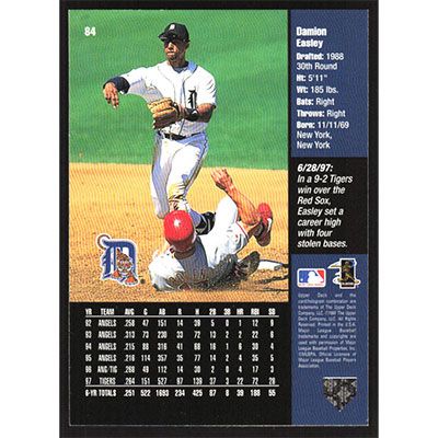This is a 1998 Upper Deck Damion Easley baseball card. The card is #84 and pictures show condition.
