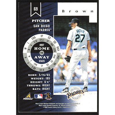 This is a 1998 Zenith Z-Silver Kevin Brown baseball card. The card is #69 and pictures show condition.