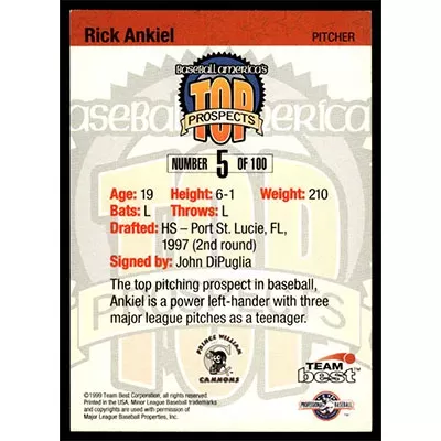 This is a 1999 Baseball America Team Best Rick Ankiel baseball card. The card is #5 and pictures show condition.