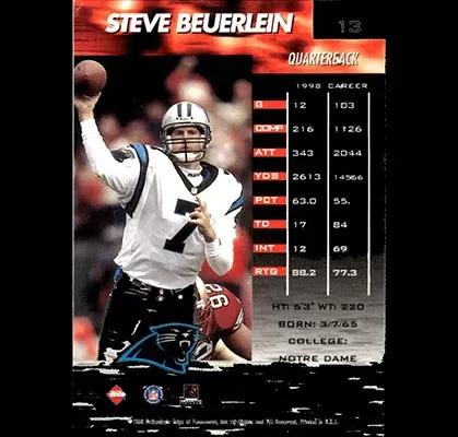 This is a 1999 Collector's Edge Millenium Collection Fury Steve Beuerlein football card. The card is #13. See images for condition.
