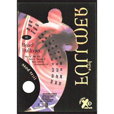 This is a 1999 E-X Century Brad Fullmer baseball card. The card is #41 and pictures show condition.