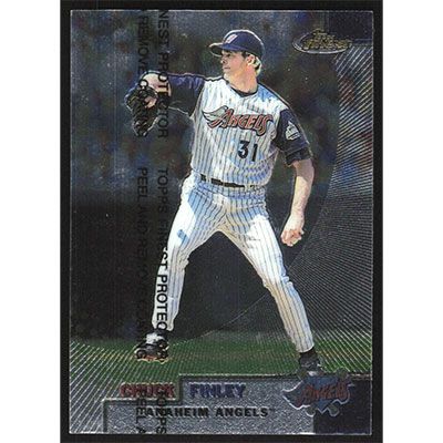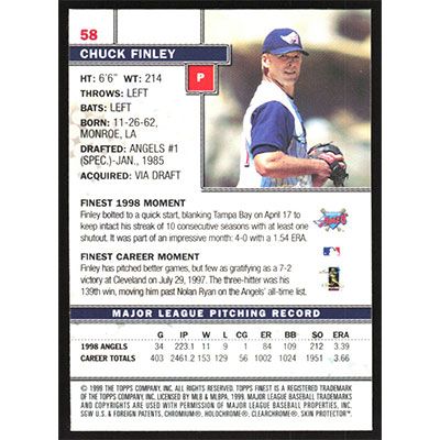 This is a 1999 Finest Chuck Finley baseball card. The card is #58 and pictures show condition.