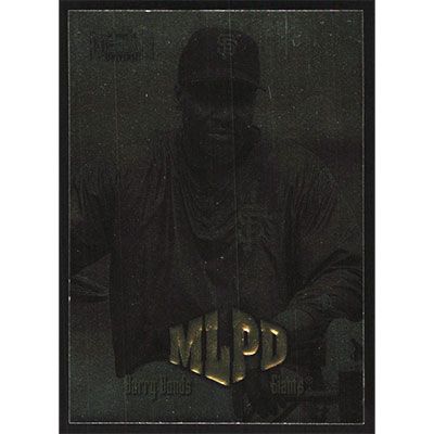 This is a 1999 Metal Universe Barry Bonds MLPD baseball card. The card is #297 and pictures show condition.