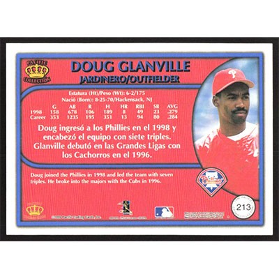 This is a 1999 Pacific Crown Collection Doug Glanville baseball card. The card is #213 and pictures show condition.