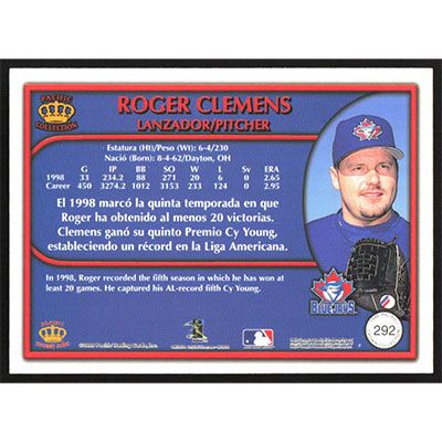 This is a 1999 Pacific Crown Collection Roger Clemens baseball card. The card is #292 and pictures show condition.