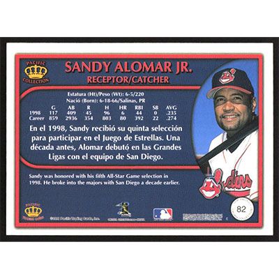 This is a 1999 Pacific Crown Collection Sandy Alomar Jr. baseball card. The card is #82 and pictures show condition.