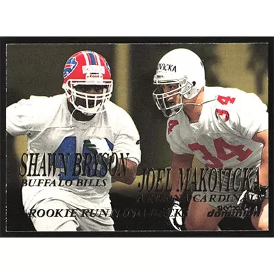 This is a 1999 SkyBox Dominion Shawn Bryson and Joel Makovicka football card. The card is #243 and pictures show condition. Team(s): Buffalo Bills/Arizona Cardinals Rookie Card (RC)
