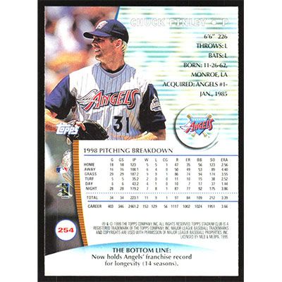 This is a 1999 Stadium Club Chuck Finley baseball card. The card is #254 and pictures show condition.