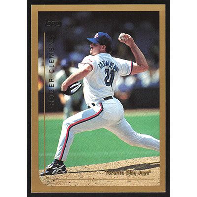 This is a 1999 Topps Roger Clemens baseball card. The card is #1 and pictures show condition.