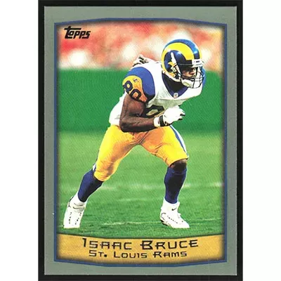 This is a 1999 Topps Isaac Bruce football card. The card is #208 and pictures show condition.