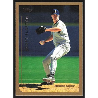 This is a 1999 Topps Scott Elarton baseball card. The card is #299 and pictures show condition.