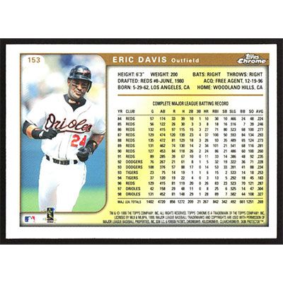 This is a 1999 Topps Chrome Eric Davis baseball card. The card is #153 and pictures show condition.
