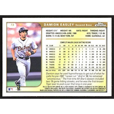 This is a 1999 Topps Chrome Damion Easley baseball card. The card is #73 and pictures show condition.