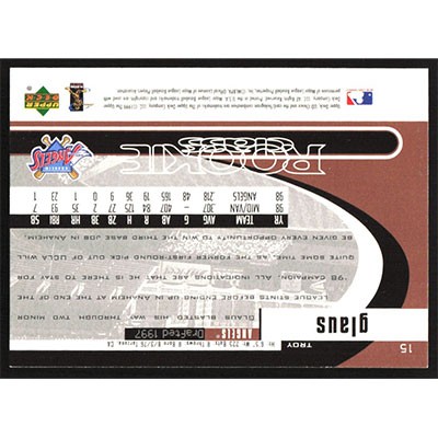 This is a 1999 UD Choice Troy Glaus Rookie Class baseball card. The card is #15 and pictures show condition.