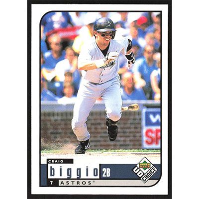 This is a 1999 UD Choice Craig Biggio baseball card. The card is #93 and pictures show condition.
