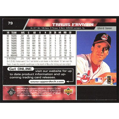 This is a 1999 Upper Deck Travis Fryman baseball card. The card is #79 and pictures show condition.