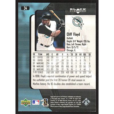 This is a 2000 Black Diamond Cliff Floyd baseball card. The card is #34 and pictures show condition.