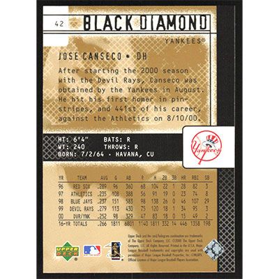 This is a 2000 Black Diamond Rookie Edition Jose Canseco baseball card. The card is #42 and pictures show condition.