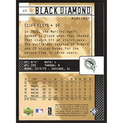 This is a 2000 Black Diamond Rookie Edition Cliff Floyd baseball card. The card is #69 and pictures show condition.