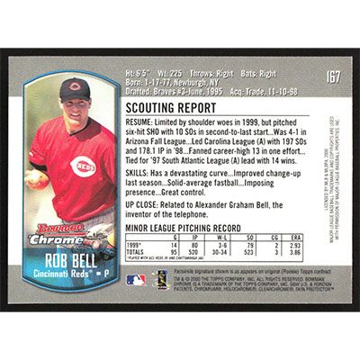 This is a 2000 Bowman Rob Bell baseball card. The card is #167 and pictures show condition.