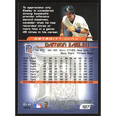 This is a 2000 Fleer Focus Damion Easley baseball card. The card is #187 and pictures show condition.