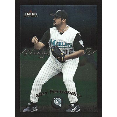 This is a 2000 Fleer Mystique Alex Fernandez baseball card. The card is #64 and pictures show condition.