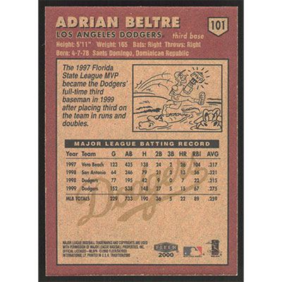 This is a 2000 Fleer Tradition Adrian Beltre baseball card. The card is #101 and pictures show condition.