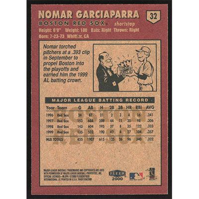 This is a 2000 Fleer Tradition Nomar Garciaparra baseball card. The card is #32 and pictures show condition.