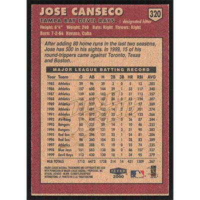 This is a 2000 Fleer Tradition Jose Canseco baseball card. The card is #320 and pictures show condition.