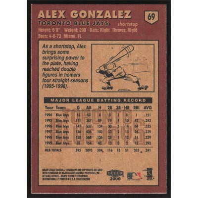 This is a 2000 Fleer Tradition Alex Gonzalez baseball card. The card is #69 and pictures show condition.